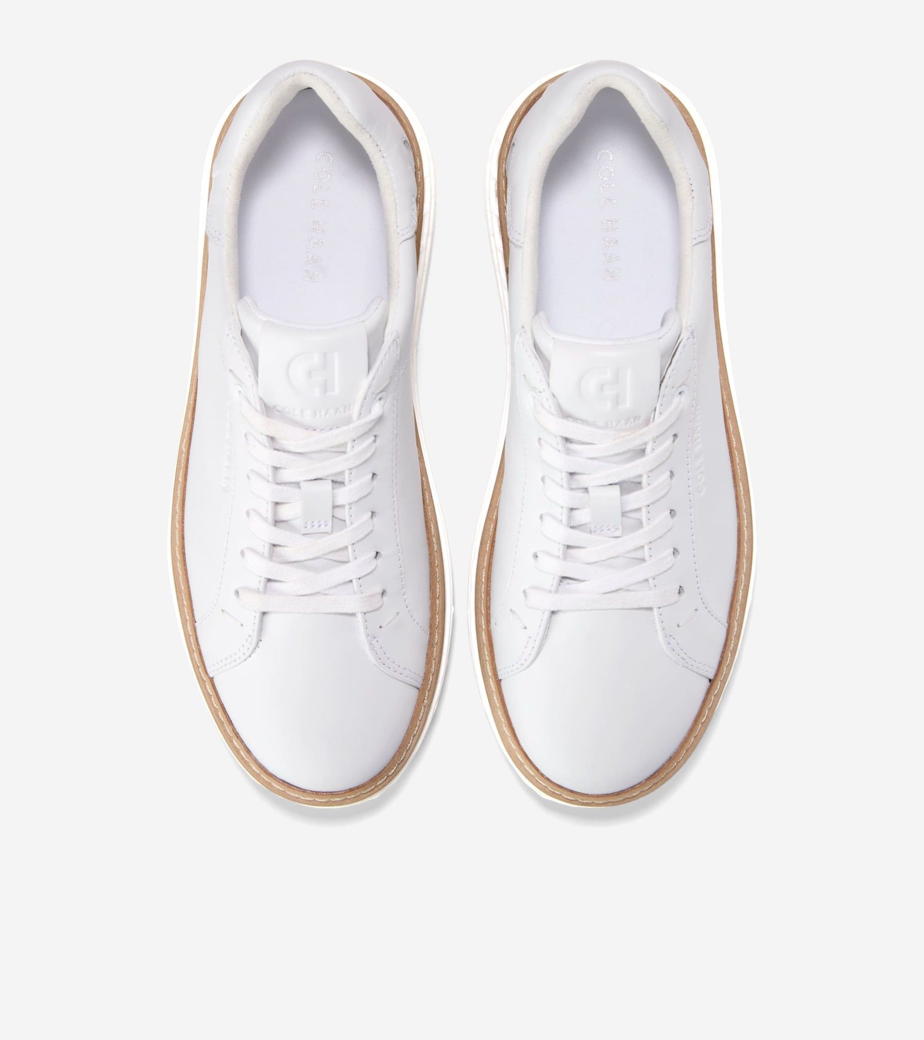 Thiết kế phong cách: Kiểu dáng thể thao cổ điển với mũ giày bằng da Cole Haan màu trắng, dễ dàng phối hợp với nhiều trang phục khác nhau.
